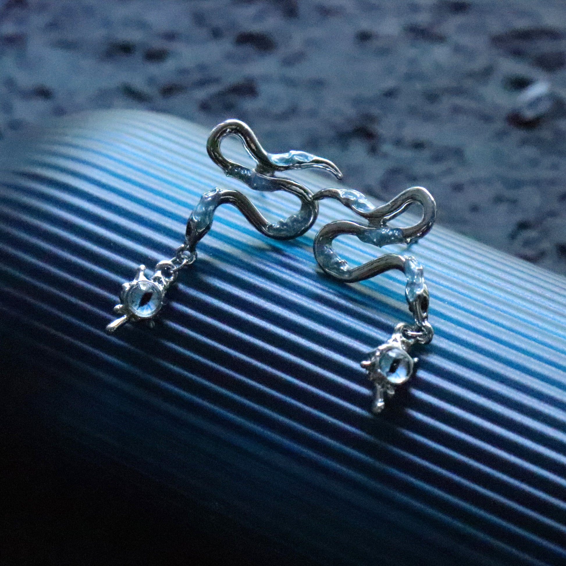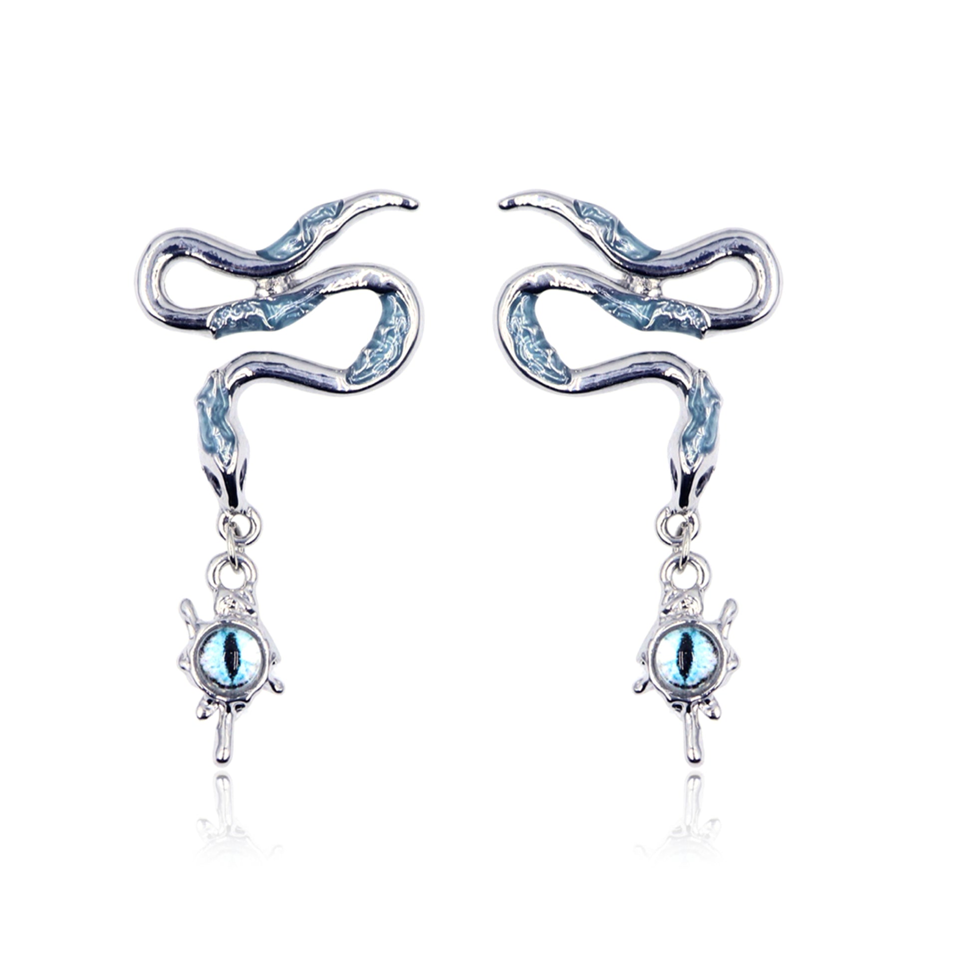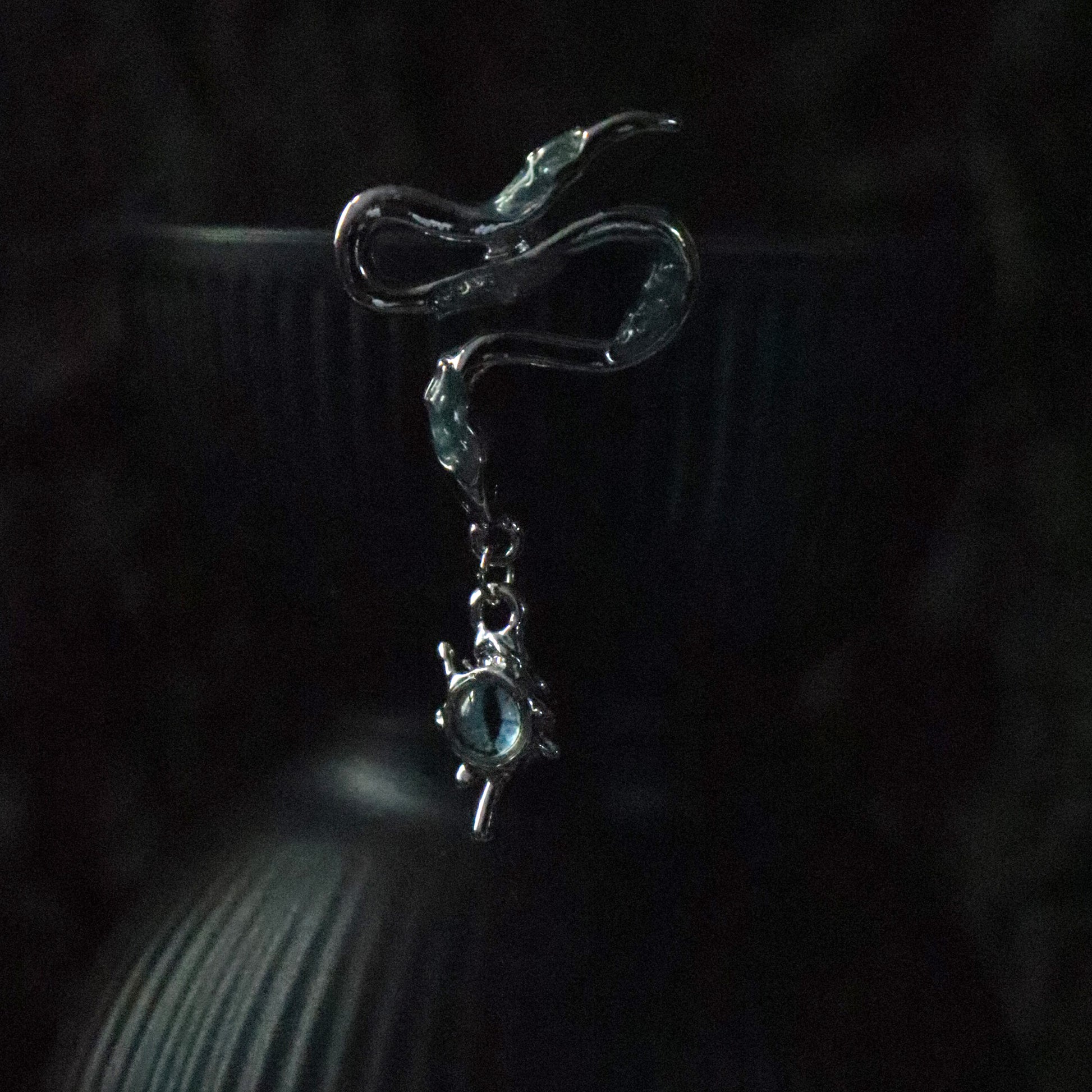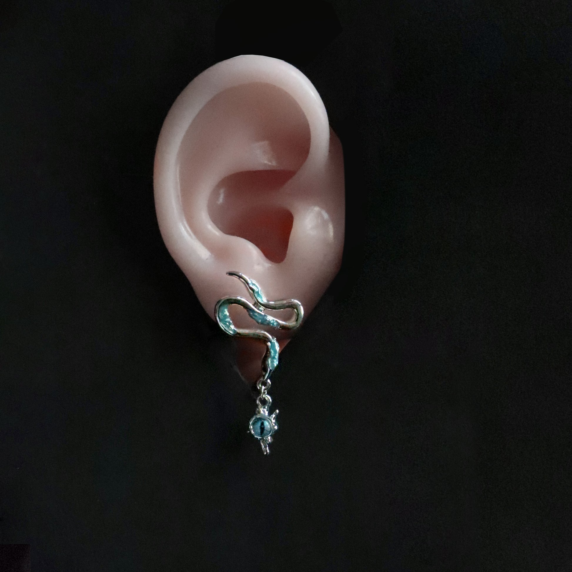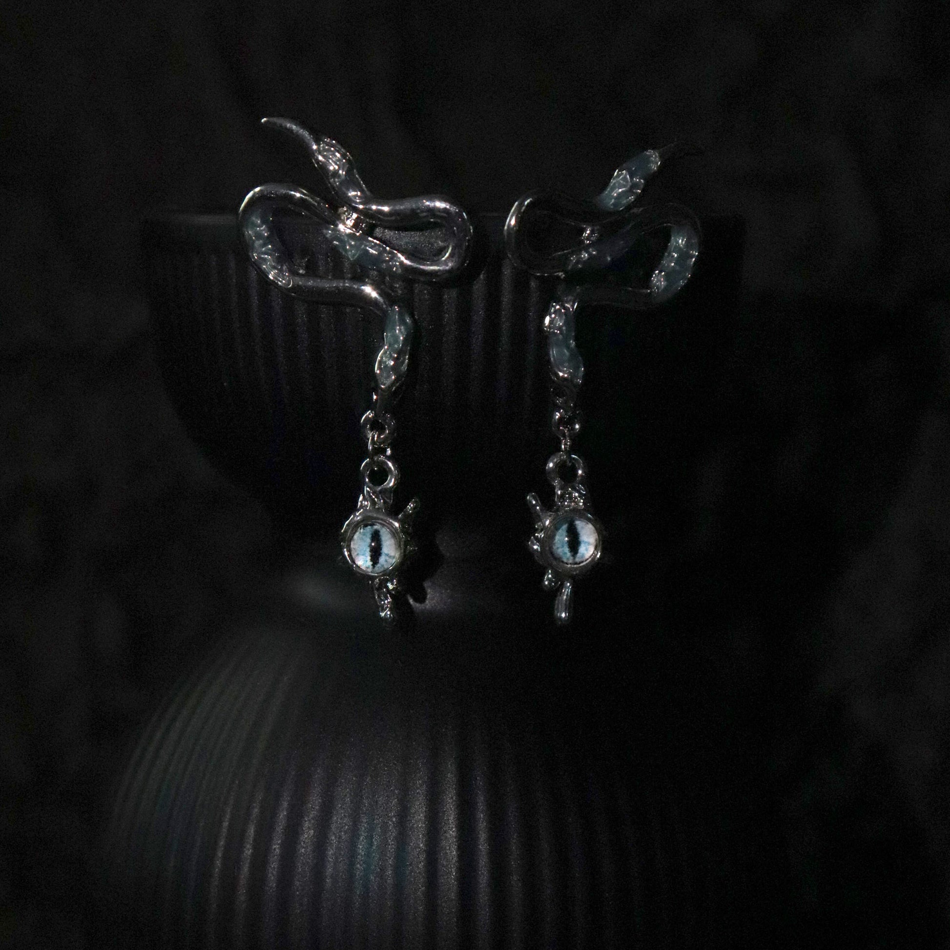 🐍 Schlangen-Ohrringe mit Blauem Katzenauge – Gothic & Punk Stil