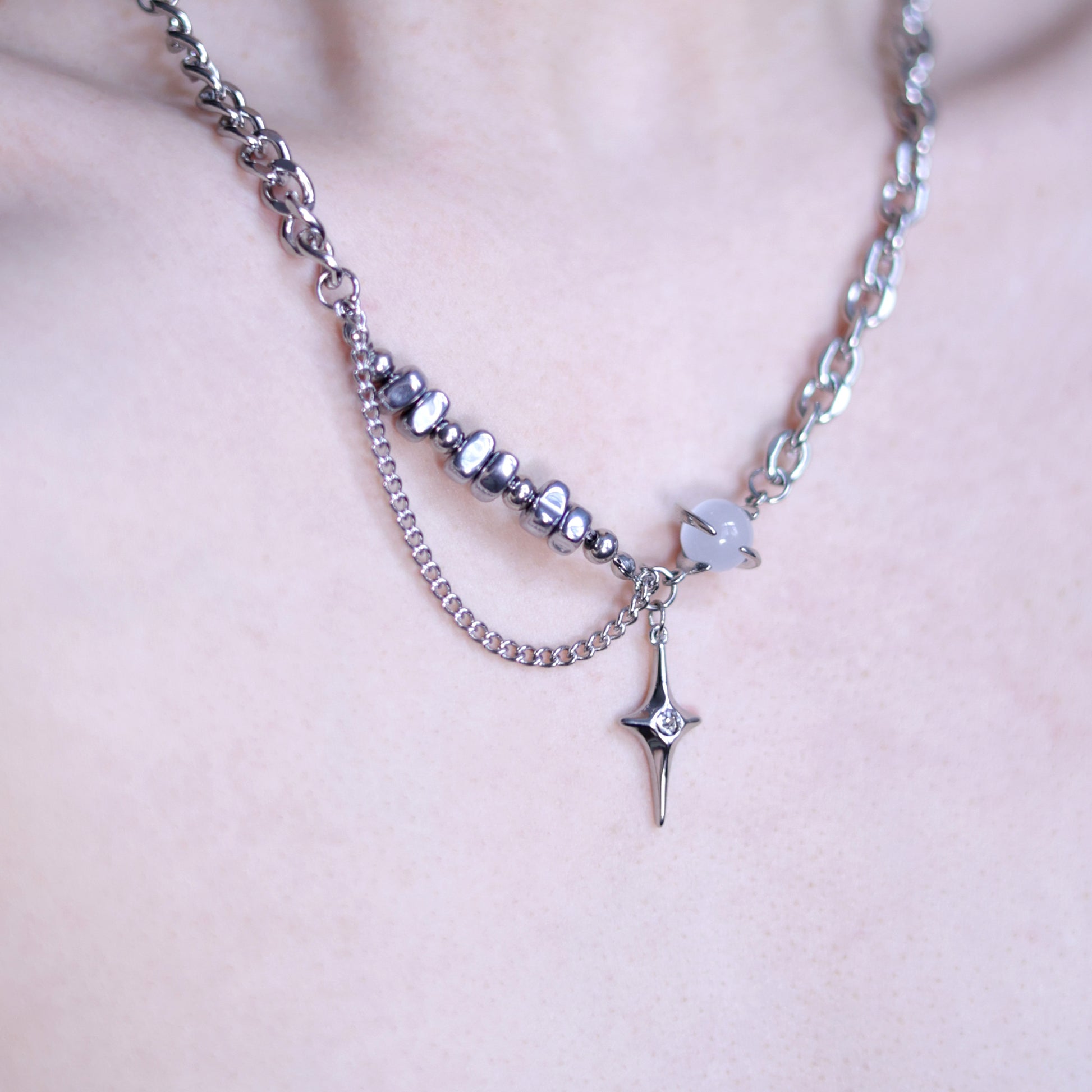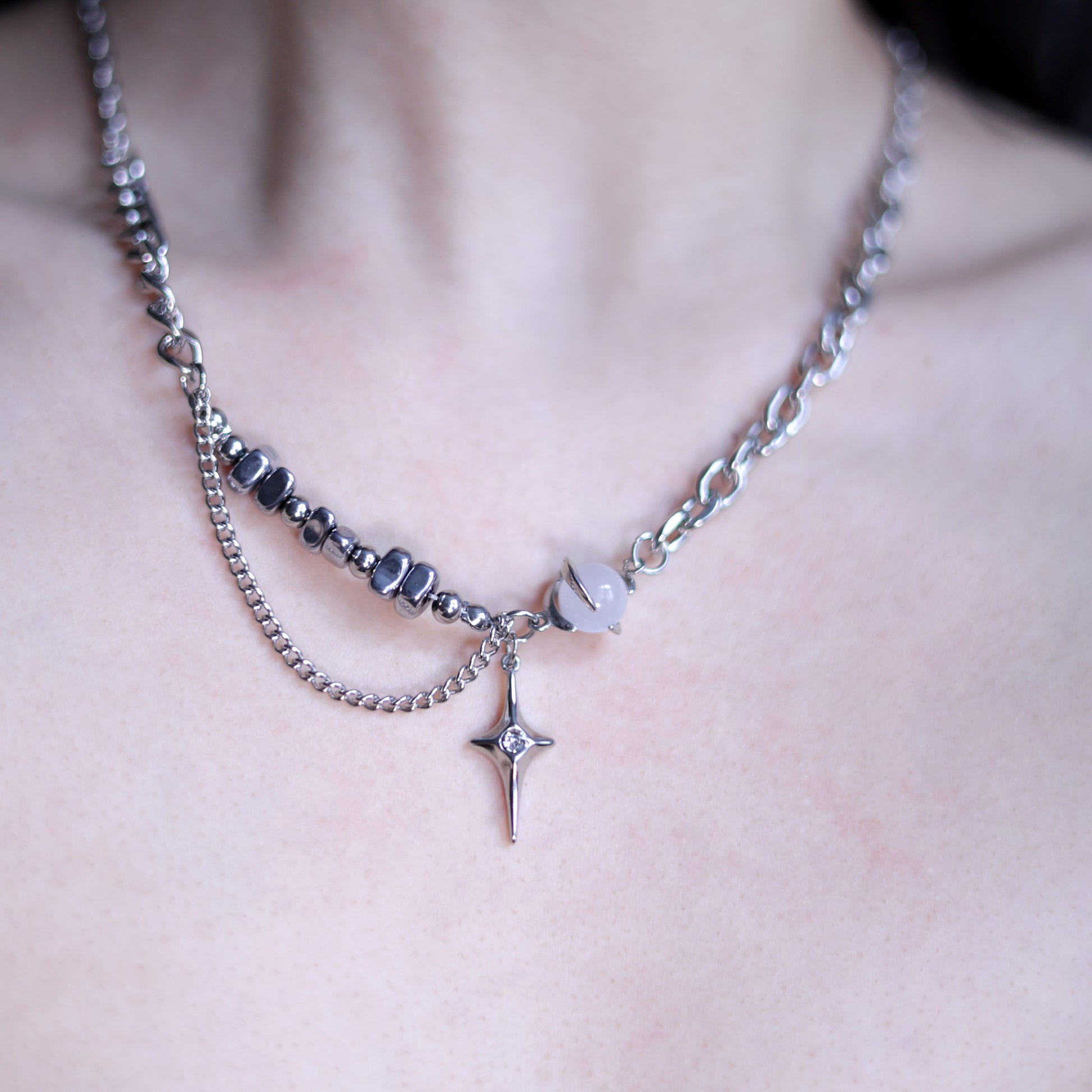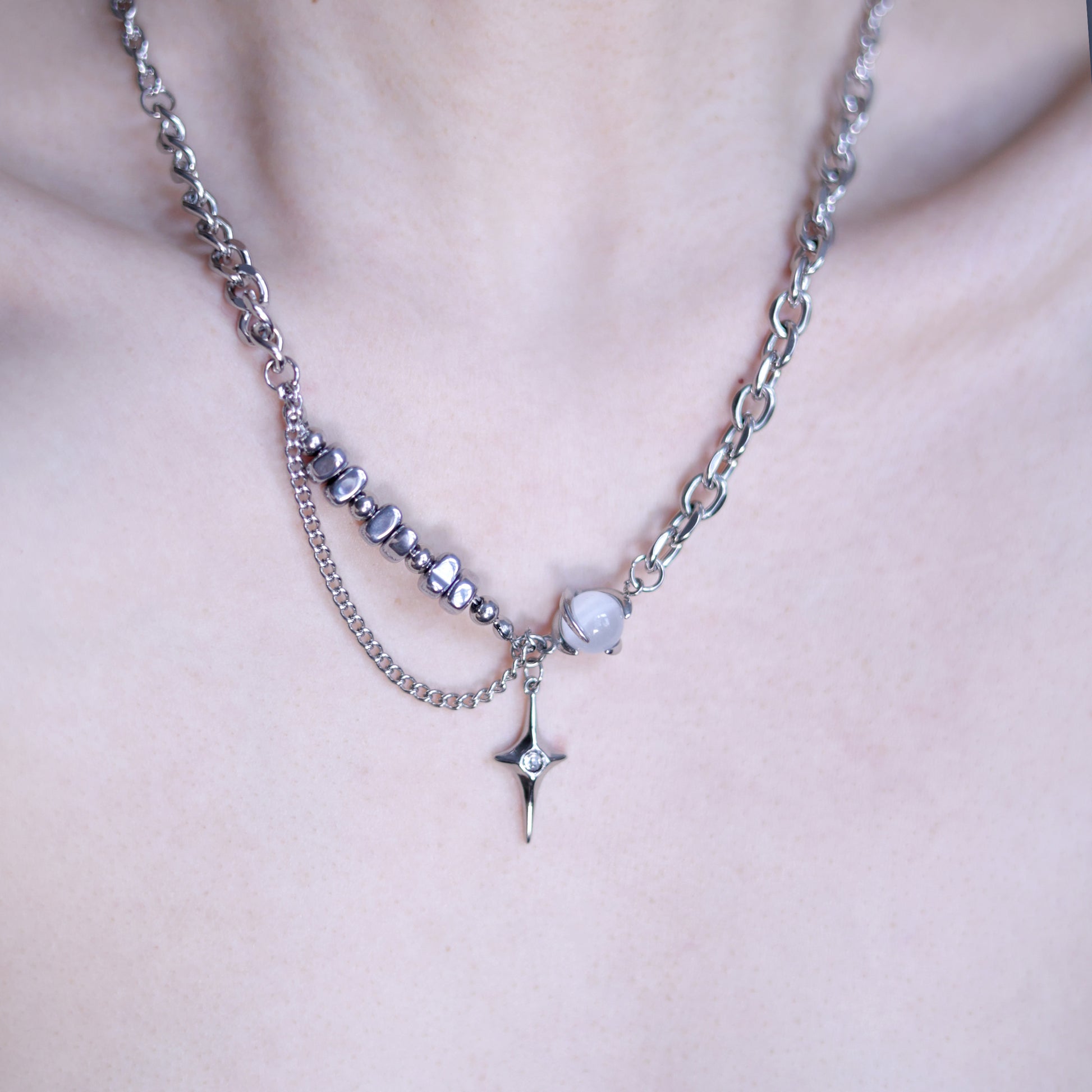 Die Kombination aus massiver Gliederkette, feinen Ketten und einem filigranen Anhänger macht sie zum perfekten Accessoire für Streetwear, Party oder Alltagslooks.