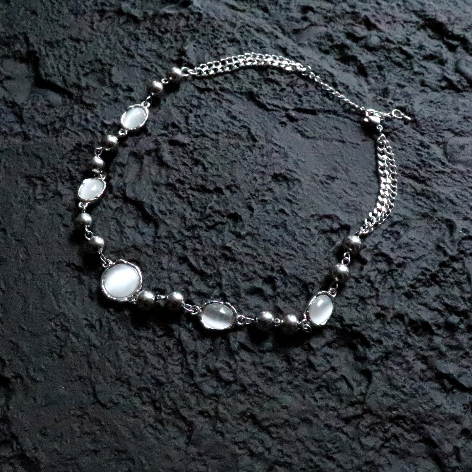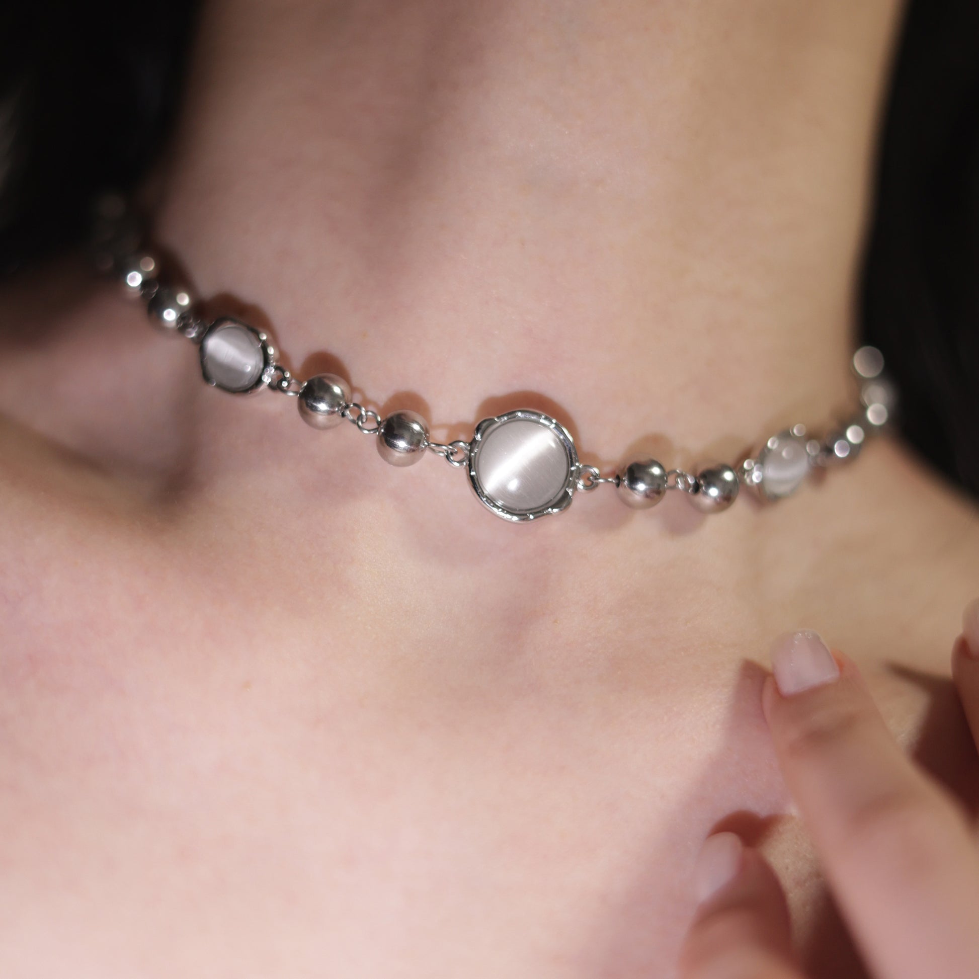 Die feinen Glieder und polierten Glaskugeln in organischer Form fangen das Licht auf elegante Weise ein – dezent genug für den Alltag, aber edel genug für besondere Abende.