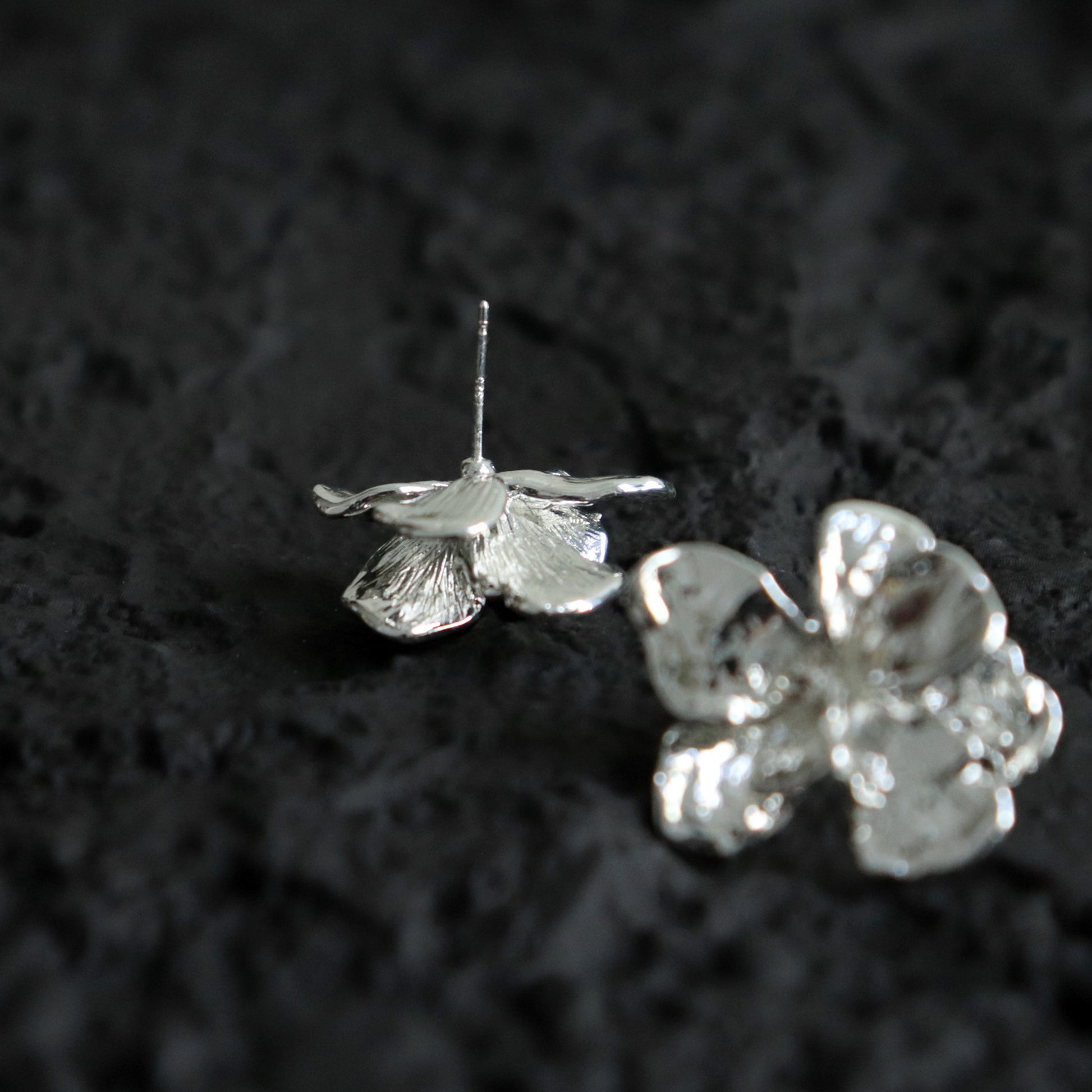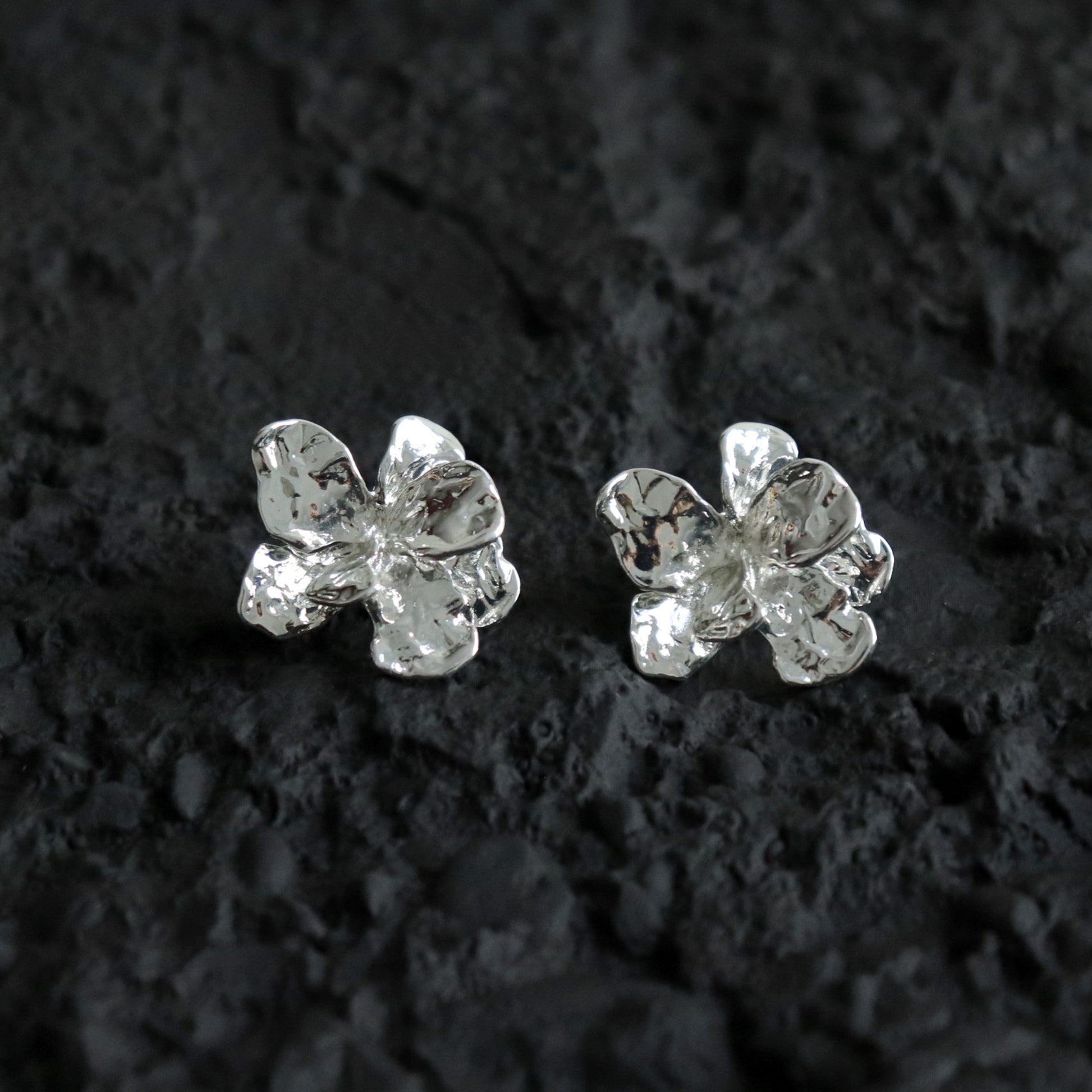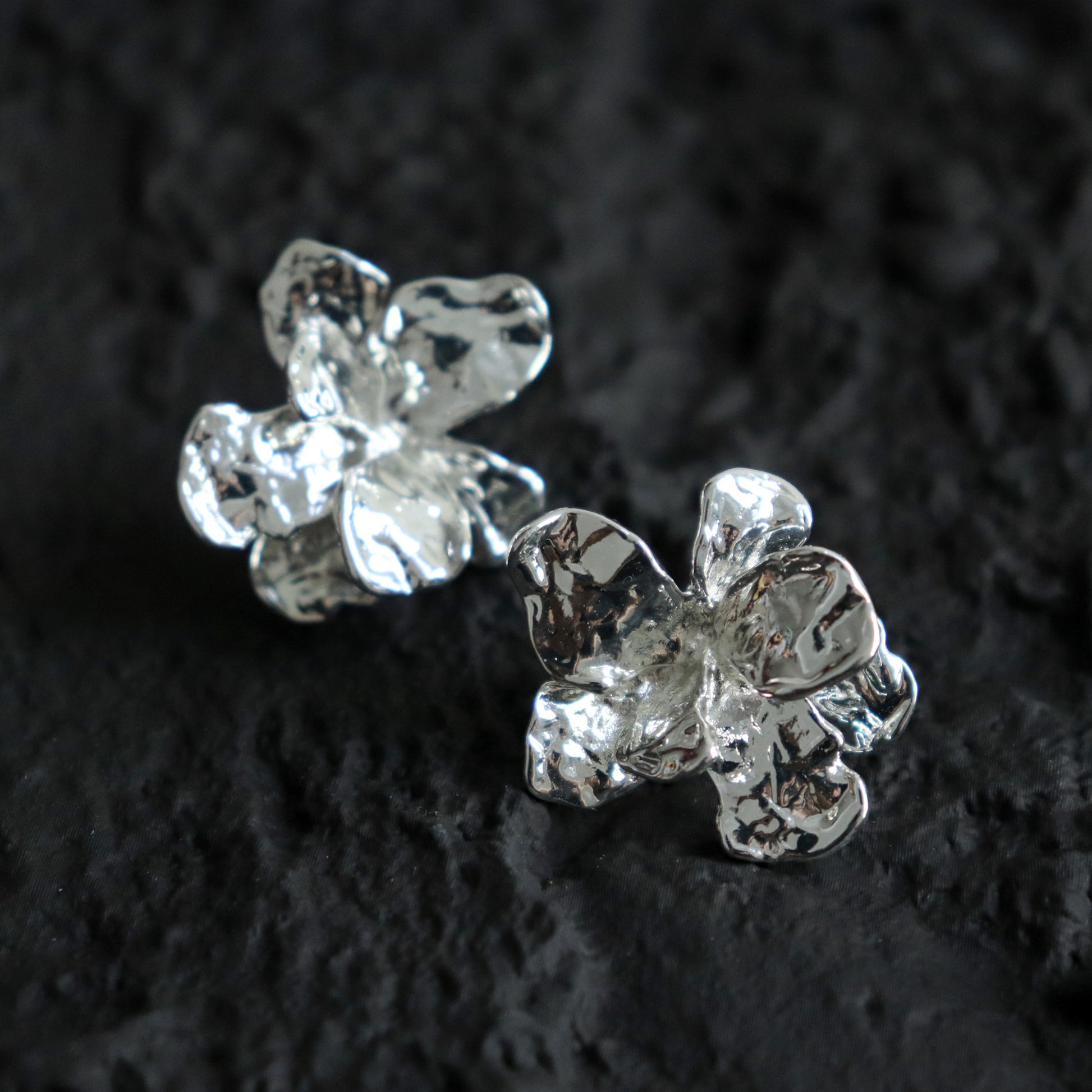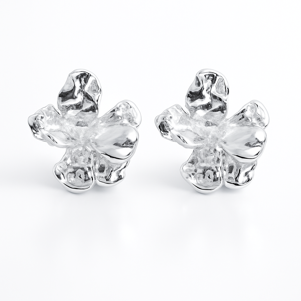 Diese handgefertigten Blüten-Ohrringe aus 925 Sterling Silber sind ein echter Hingucker. Ihre organische, unregelmäßige Form macht sie zu einem minimalistischen Statement-Piece für jeden Anlass.