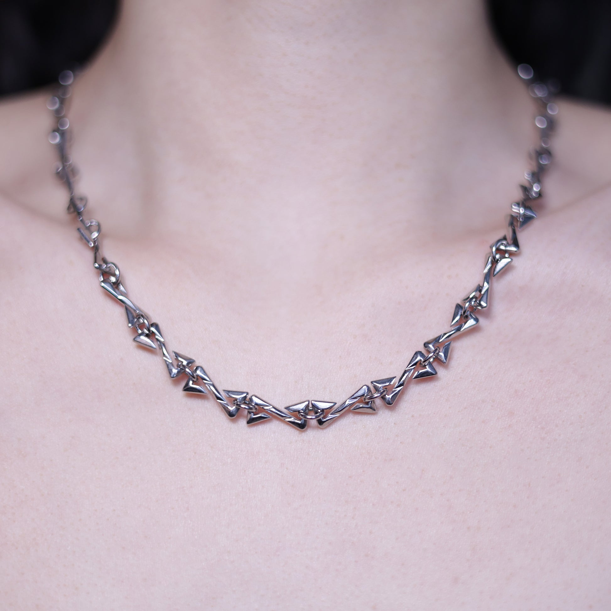Diese Zickzack Kette ist dein Must-Have für Y2K, Streetwear und Club Looks. Die kantigen, geometrischen Glieder setzen ein starkes Statement – perfekt für alle, die auffallen wollen.